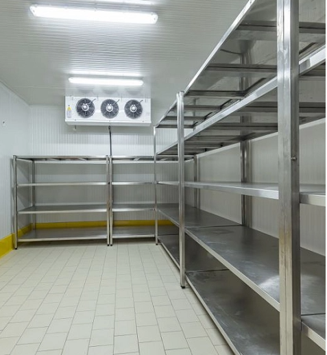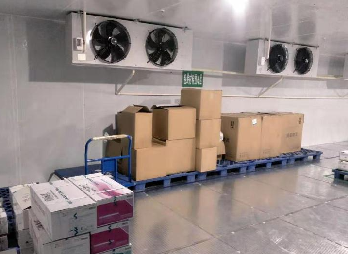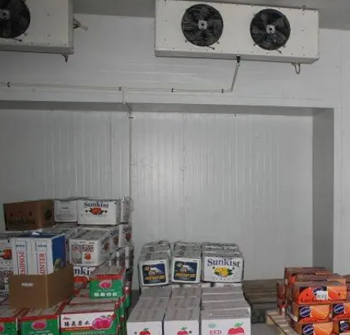 冷庫內配備的是2臺浙江凱迪系列高效強風型冷風機,該風機運行穩(wěn)定噪音小,送風距離遠,使得庫內降溫速度快,極大增強了化霜效果,增加快速對流循環(huán),從而達到每個角落的溫度均勻性。